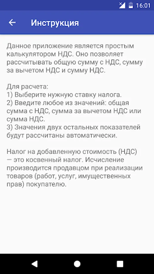 Value-added tax (VAT) is an indirect tax. The calculation is made by the seller when selling goods (works, services, property rights) to the buyer.