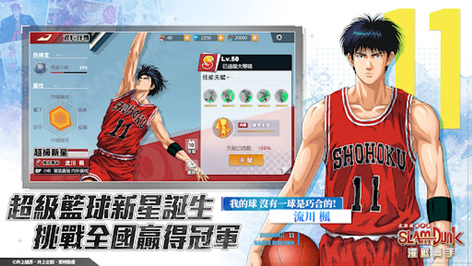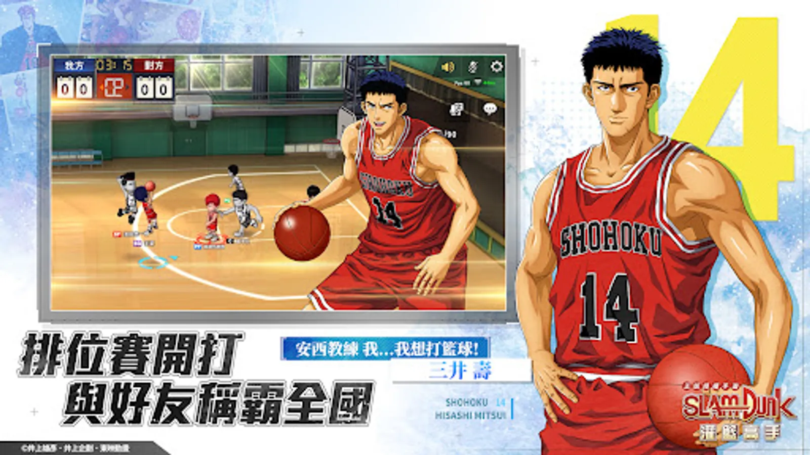 "Slam Dunk SLAMDUNK" is a live-action real-time basketball competitive mobile game, published by DeNA, authorized by Toei Animation and fully supervised. The game is adapted from the original manga by Inoue Takehiko and the animation "Slam Dunk" of the same name produced by Toei Animation. Players can control the original characters, acquire skills, experience the classic plot of the original animation and the powerful strength of each college team. The blood and emotion brought by the competitive events.