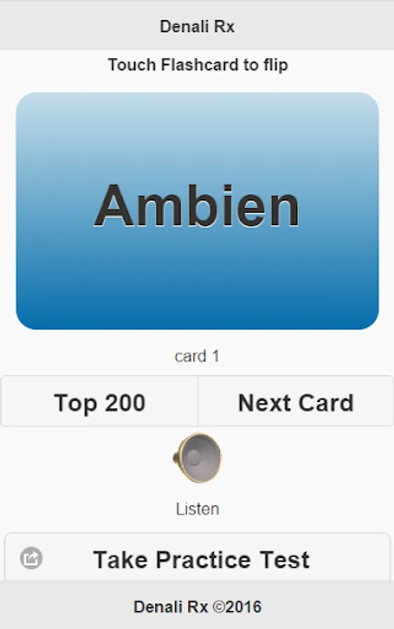Top 200 Drug Flashcards by Denali Rx. Learn by either using brand-to-generic or generic-to-brand. Pronunciation of the drugs are also provided for each brand and generic drug. Complete set of 200 Brand and 200 Generic Drugs with audio file for each drug. New 2002 version included.
