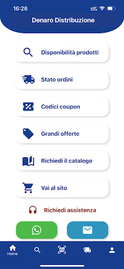 Thanks to the new Denaro Distribuzione application, it will be possible to check availability in real time, the status of orders placed and request assistance in a very simple way. Furthermore, to log in, simply enter the same credentials as our online store.