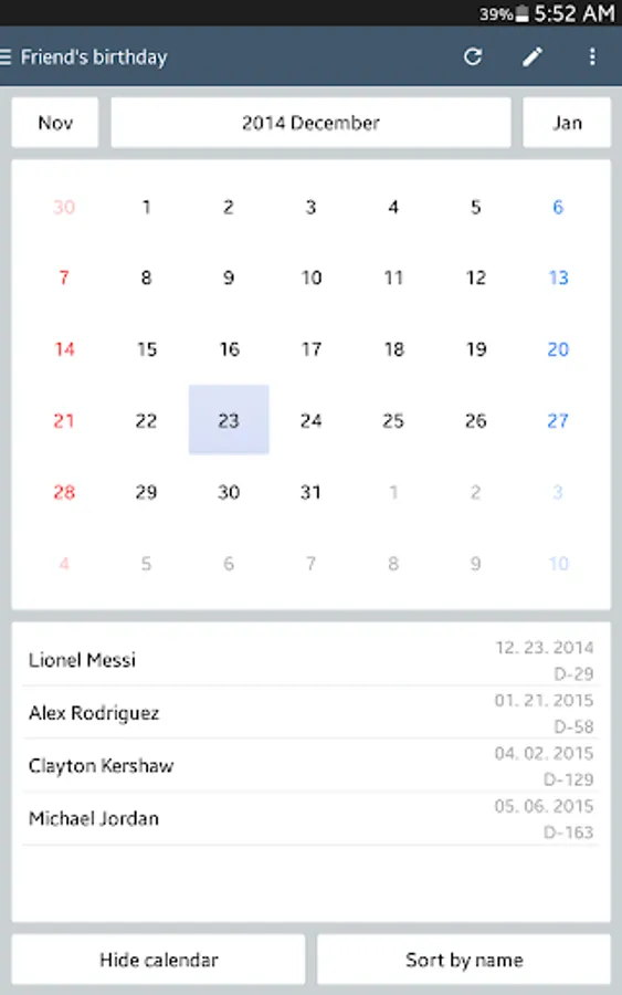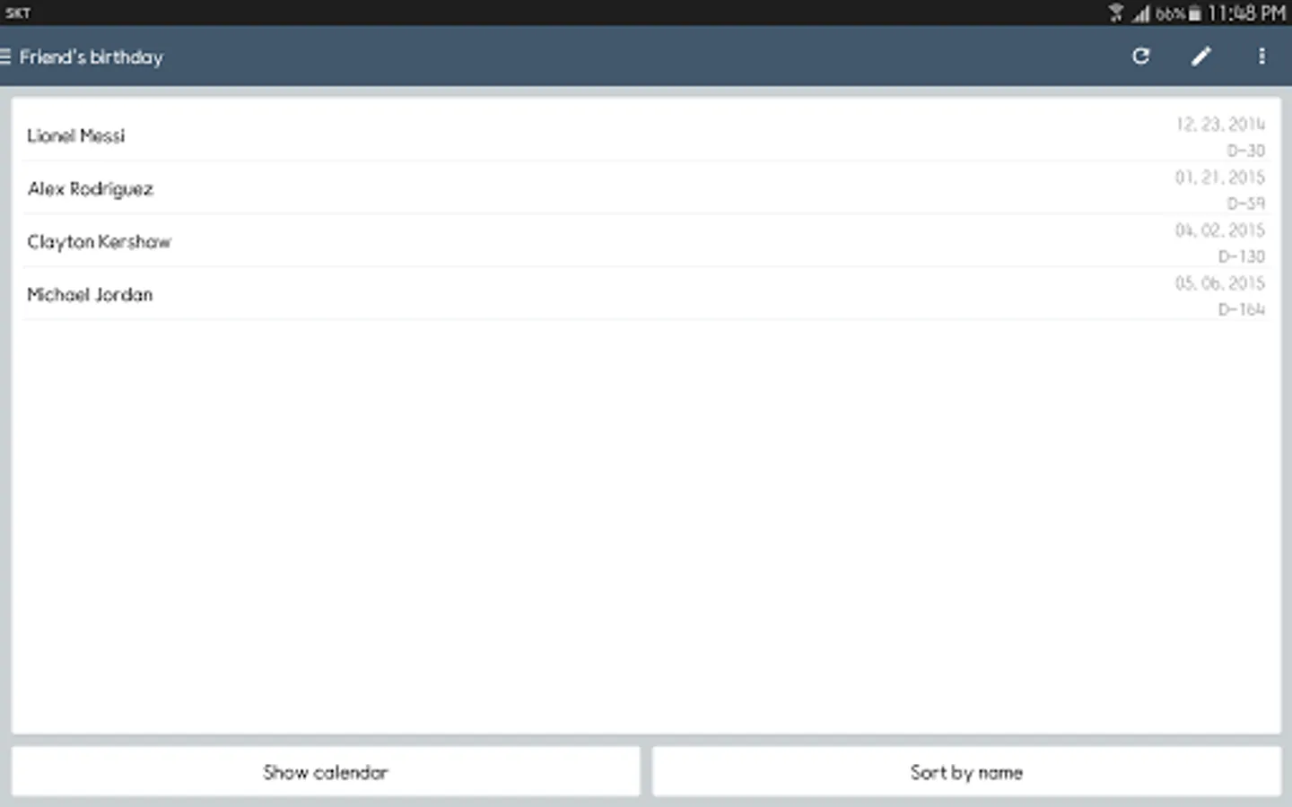 - It reminds you about family or friends' birthdays. It supports calendar mode.