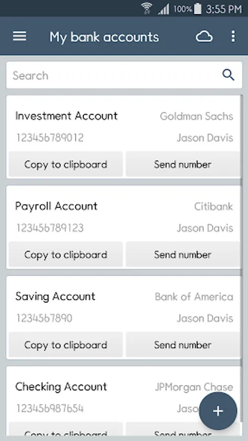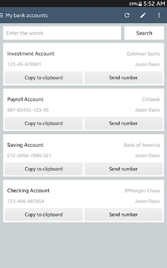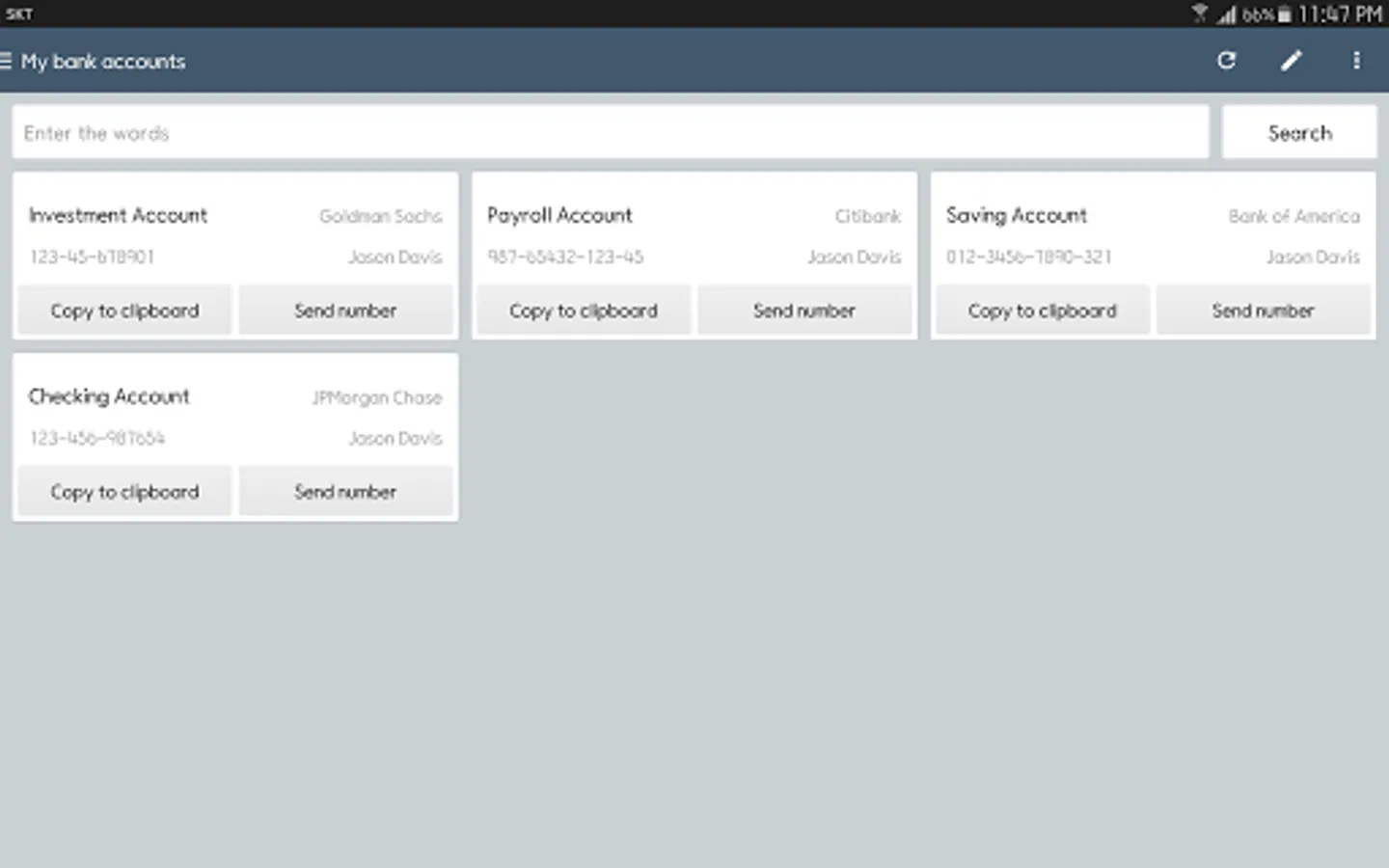 - If you enter the bank account number, you can copy it to the clipboard or send it to someone.