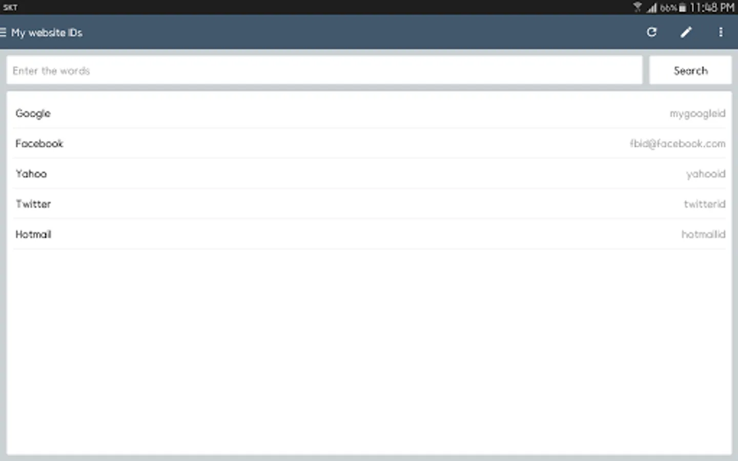 - Since there are countless internet sites out there, it is difficult to remember your IDs. This function helps you to remember them.