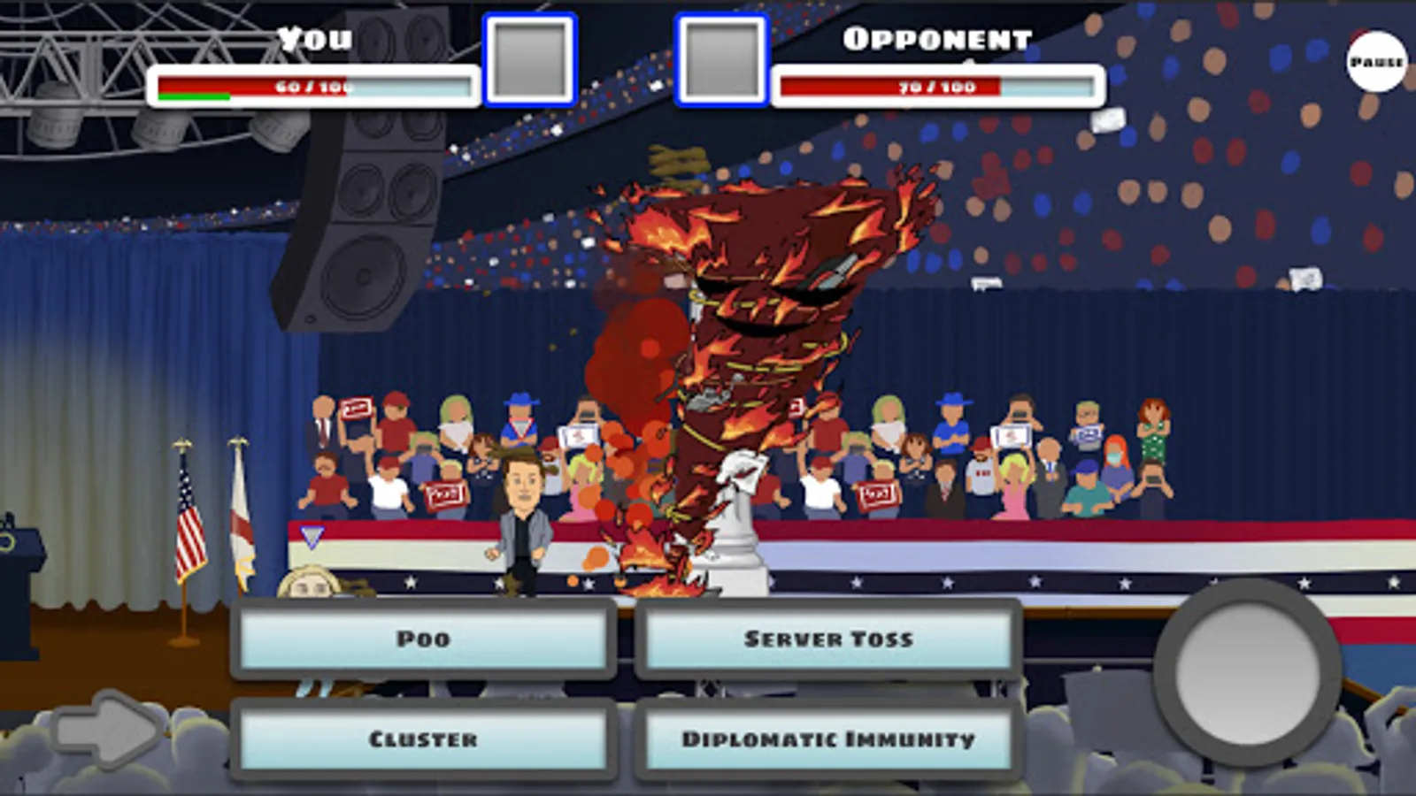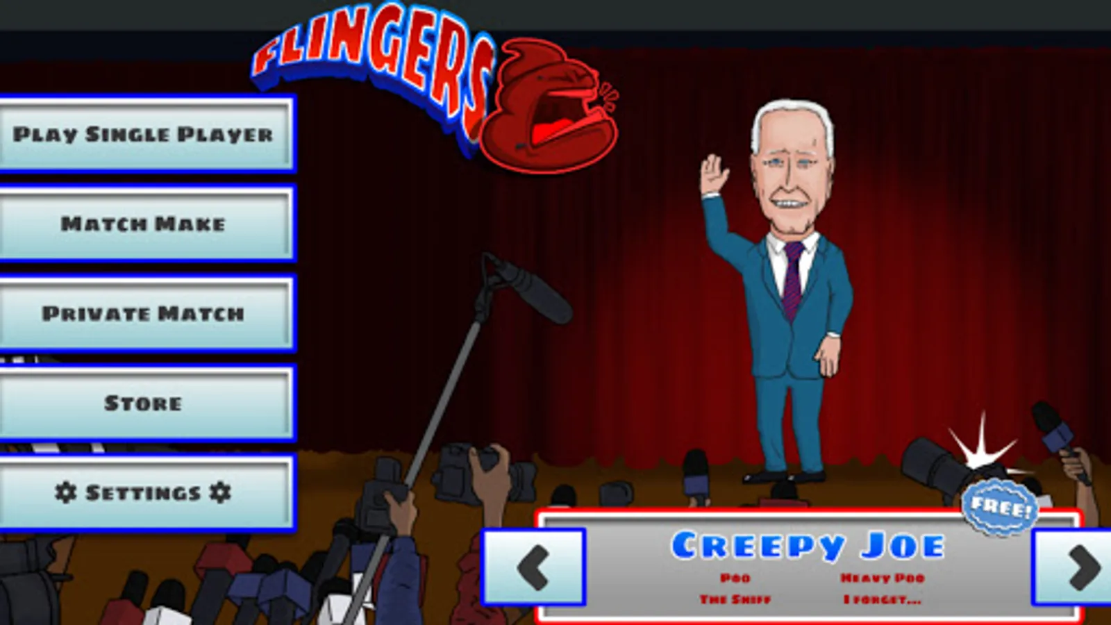Politics is a dirty game, but now you can play, too! Jump into the political arena with Flingers, a battle game where you can sling the mud at your favorite rivals. Test your mettle against diplomats, billionaires, and influencers as you take the low road to political victory!