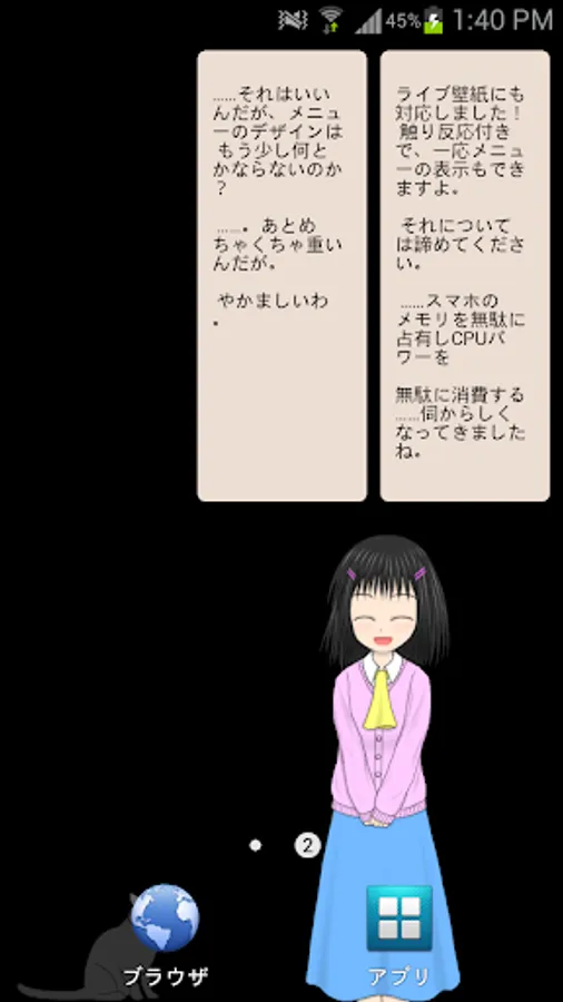 - From the setting screen of live wallpaper, live wallpaper size, distance from the lower right, background image, message speed, and you can set the font size.