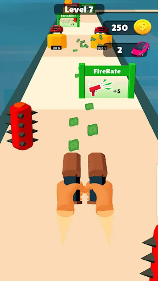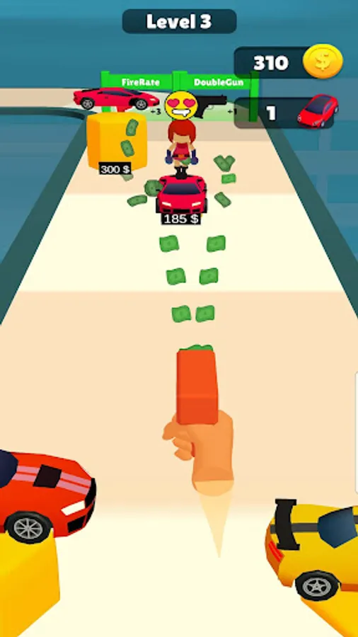You are the richest (more than 100b dollars net worth) girl in the game world. So you lavish your money and order to make a money gun to get gold coins for power up and upgrading your weapon (increase fire rate and double gun) and collect sport and expensive cars such as rolls royce, ferrari, lamborghini, bugatti, maserati.