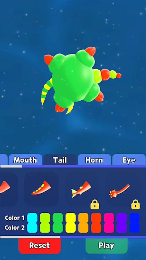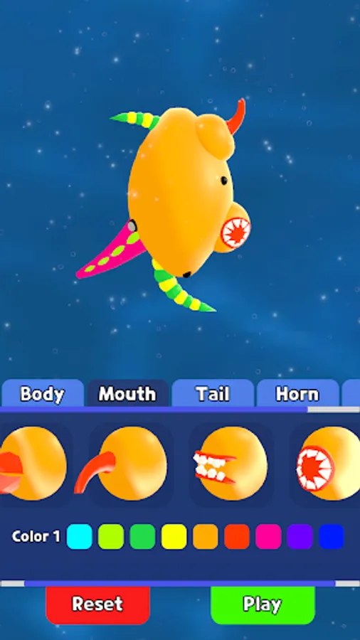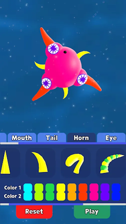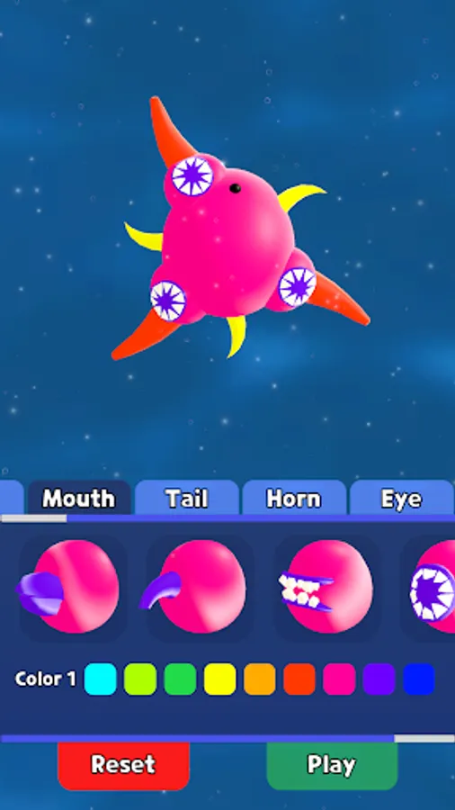 🦠Create unique creatures with customizable body parts and color options.