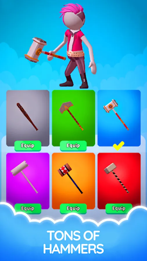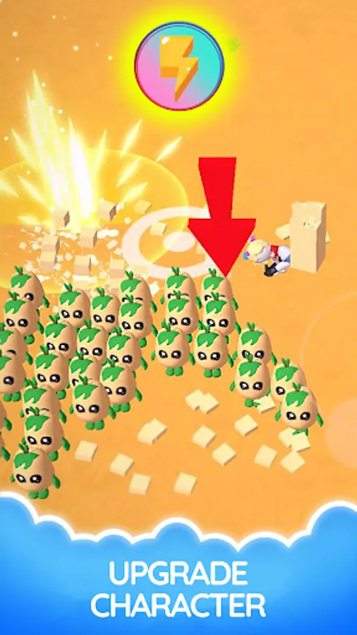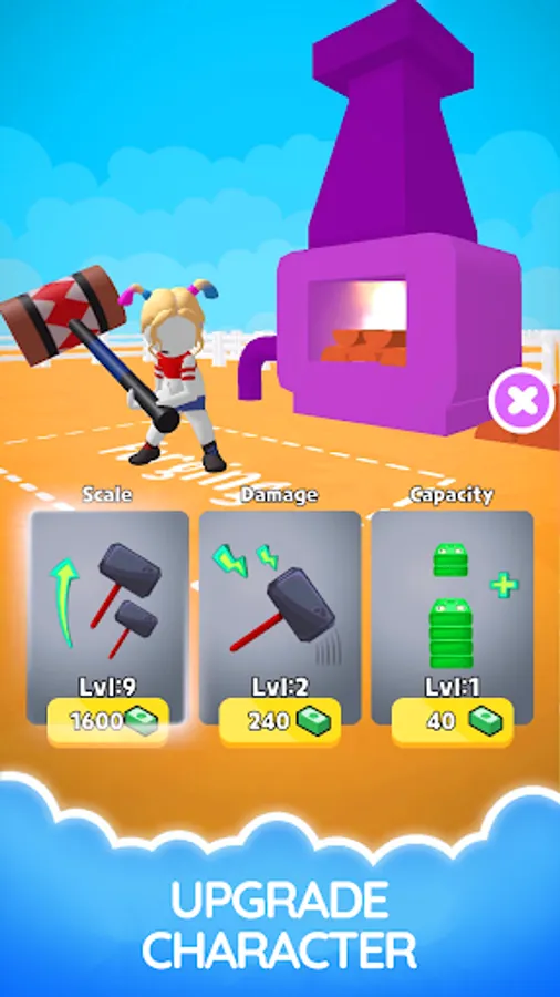 You should walk around and smash all goblins by amazing your hammer to convert cubes then collect them and bring them to the compressing machine for making delicious juice bottle, and finally sell all of them to market and get your money.