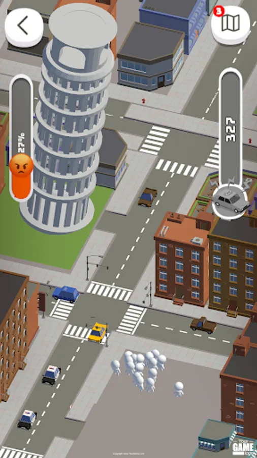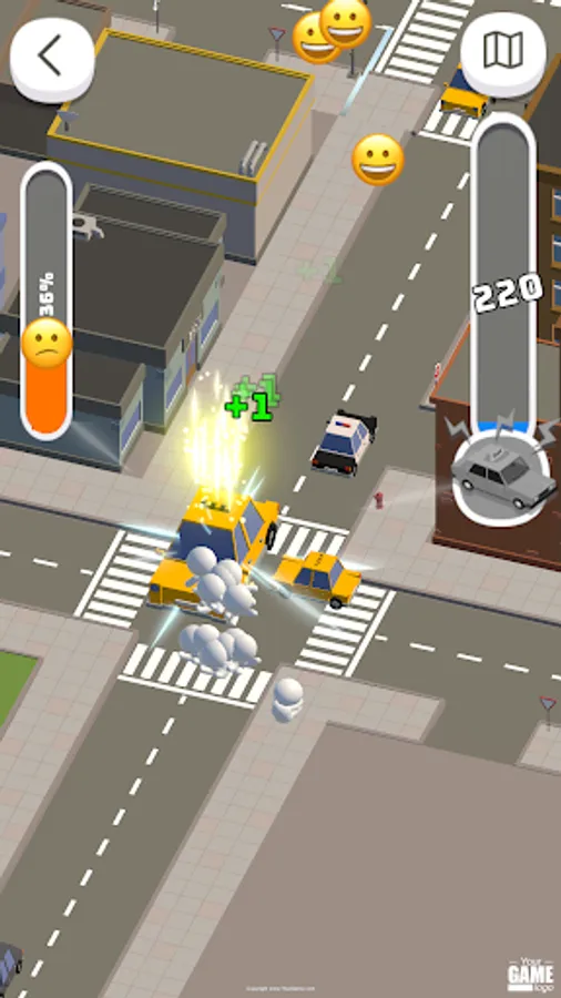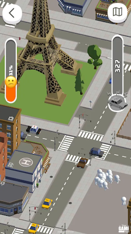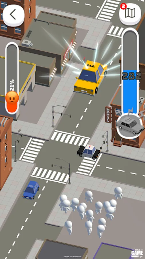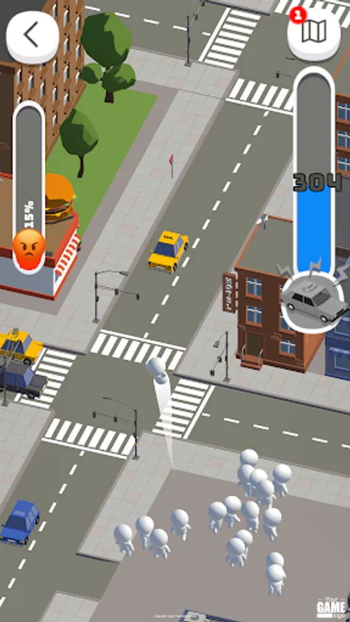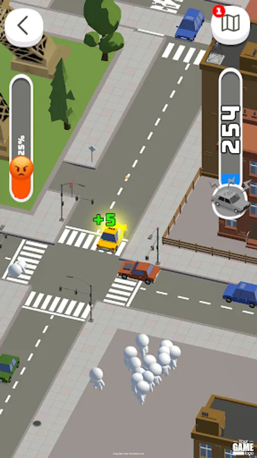 Players must quickly tap on the sticky men to make them jump into the taxi before it drives away.