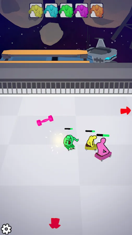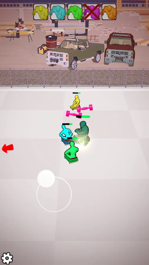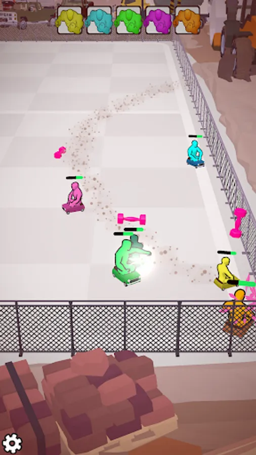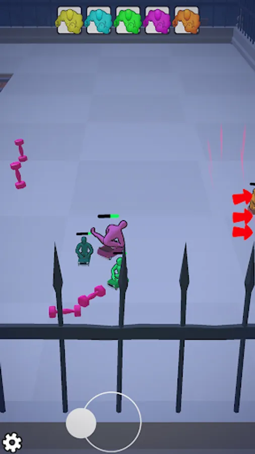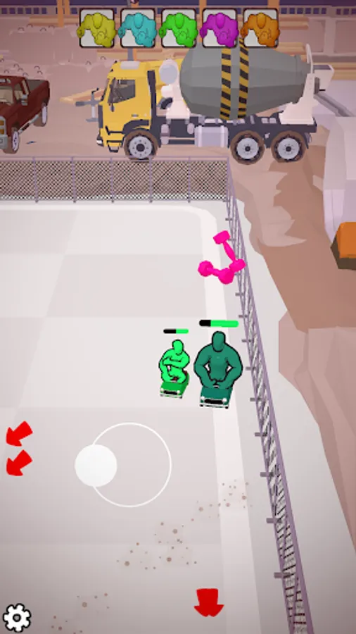 In Muscle Party game, you should drive around the arena to collect dumbbells, punch, kick other people, and avoid obstacles with your car.
