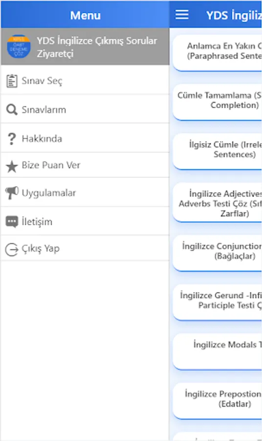 You can prepare for the YDS / e-YDS YÖKDİL Exam by solving more than 10,000 questions with the YDS / e-YDS YÖKDİL English Issued Questions application.