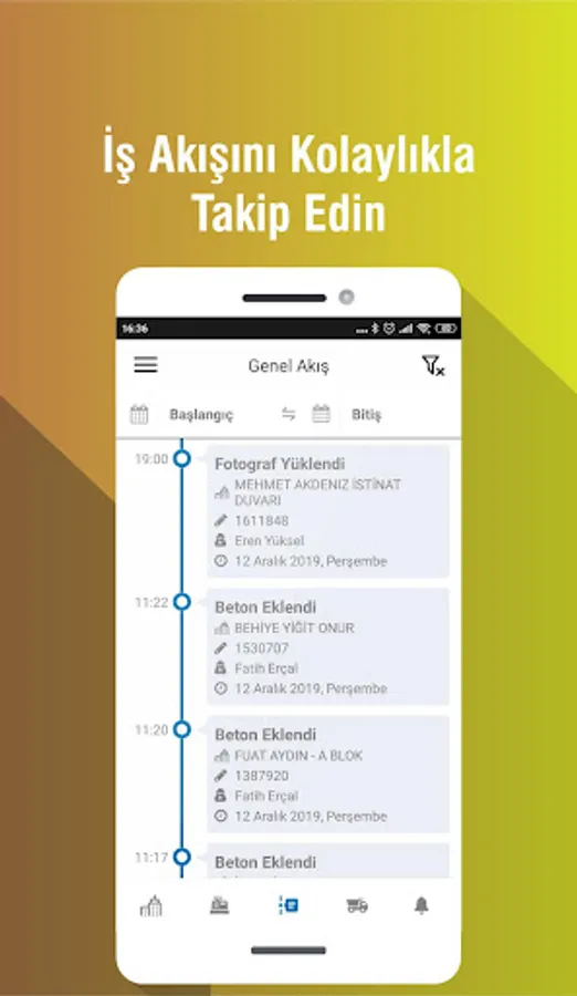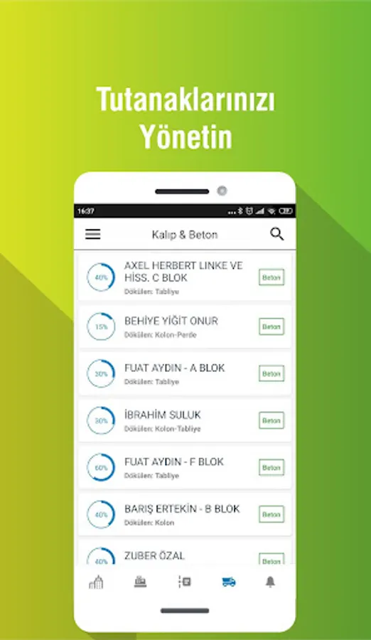 With mobile device based photo upload feature, reinforcement control, concrete pouring, level determination etc. uploading photos to the system,
