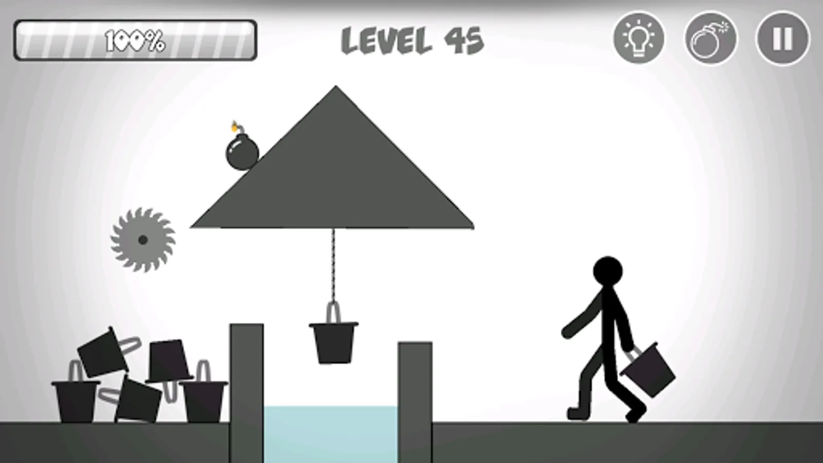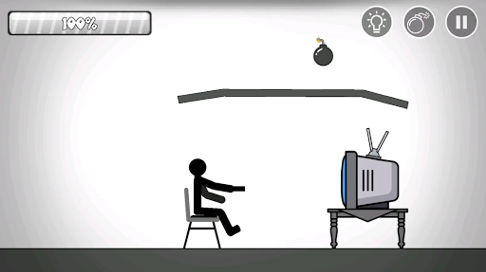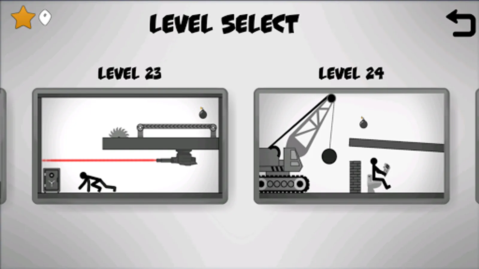 Stickman Hello Stars 2 The job of each level is to guide a bomb from a predetermined start point so that it touches all of the stars placed on the level. The bomb and nearly all objects on the screen are affected by gravity. The first few levels are almost too easy, but as the difficulty increases you'll be thankful that you were able to practice the fundamentals of draw. As the game progresses, you'll have to use all sorts of theory to figure out a solution for each puzzle.