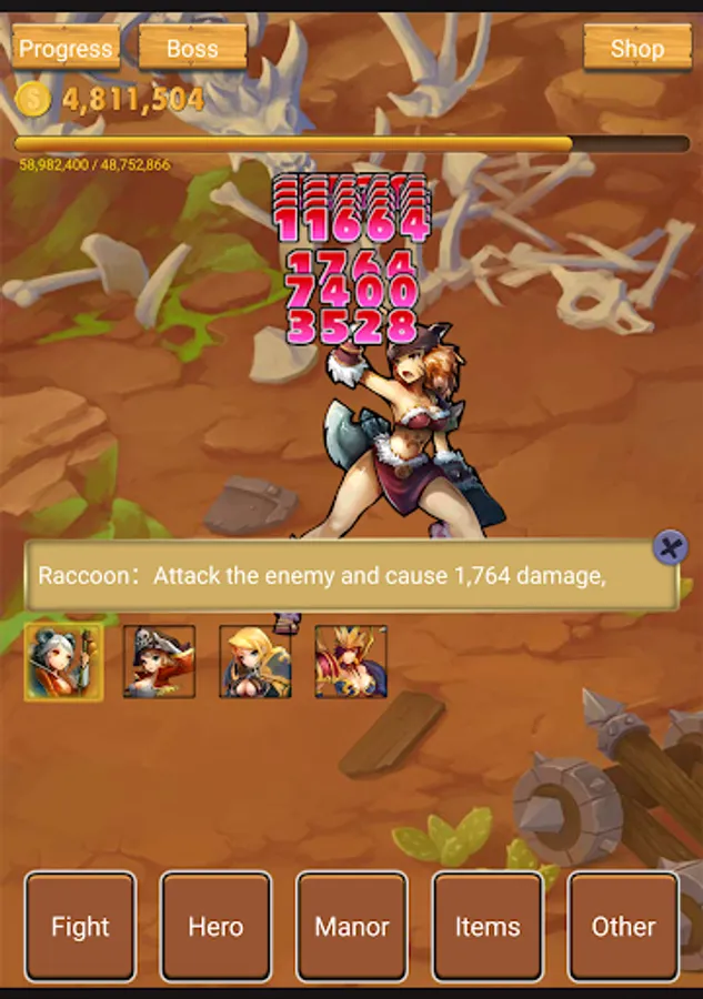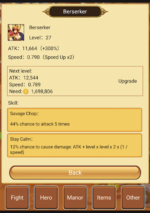 Upgrade heroes, increase ATK and speed up attack.