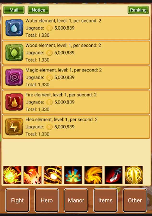 Five elements are produced automatically. The damage of some heroes depends on the number of elements.