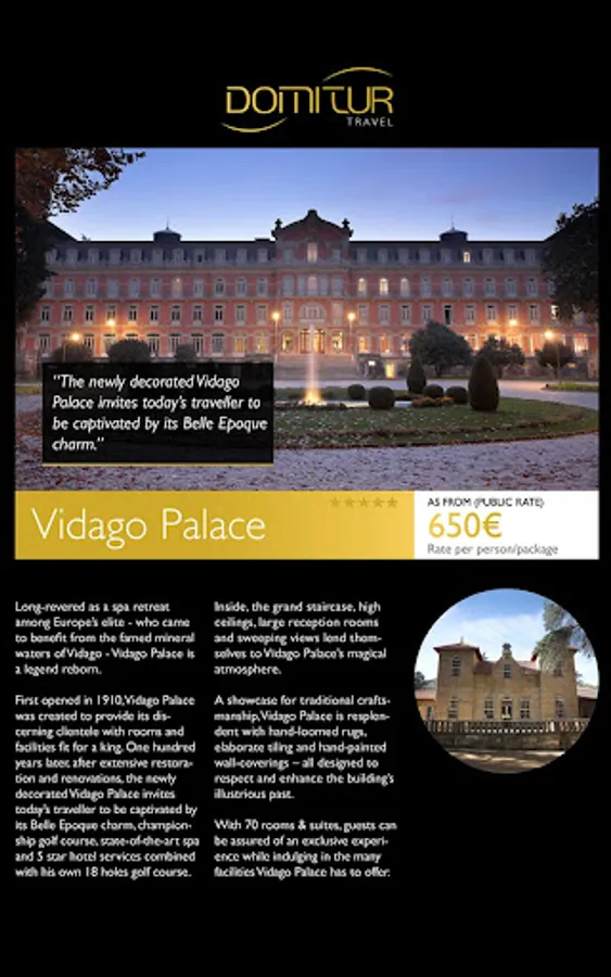 Golfing in Portugal but not sure what to choose? Looking for the best value for money offer but not sure if you have found it? Domitur has made a Deluxe selection for you! 12 perfect golf choices from North to South of Portugal, no matter if you fly to Oporto, Lisbon or Faro, YOUR perfect golf holiday is here. Just choose your perfect resort, decide your travel date and enquiry us by email. In a maximum of 1hour your will receive all details and exact quote with no commitments.