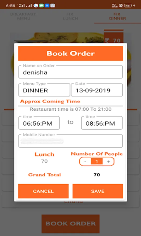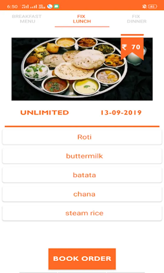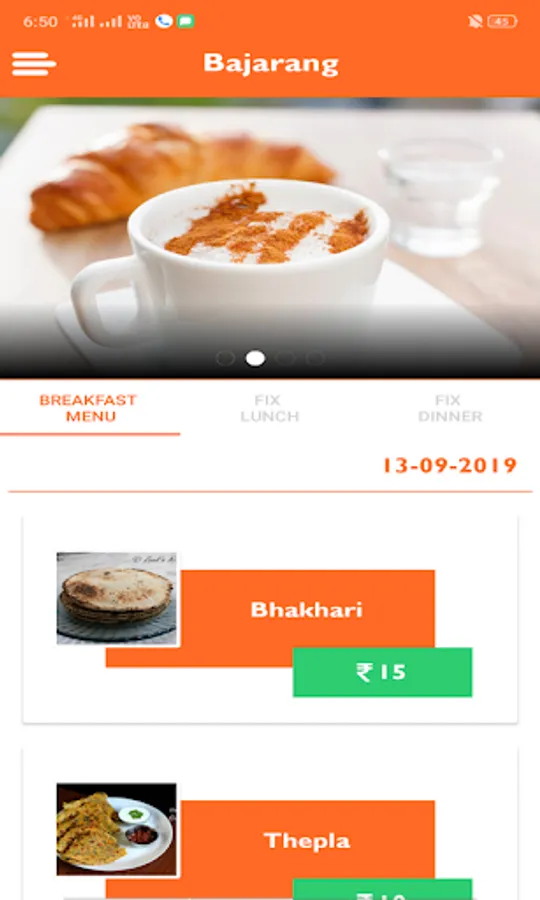 Using Bajrang app customer can see daily updates and Select or order daily menu for breakfast, lunch and dinner.