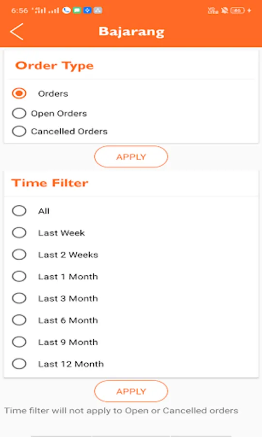 Customer can also apply filters for previous orders according to day or month or can check order history.
