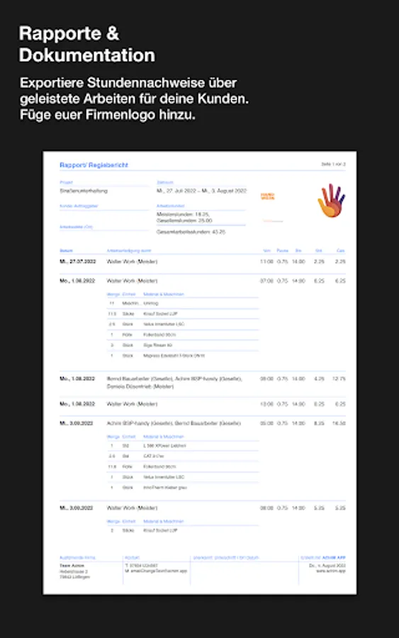 Good work has a high value, which is why transparency should not be neglected when recording working hours.