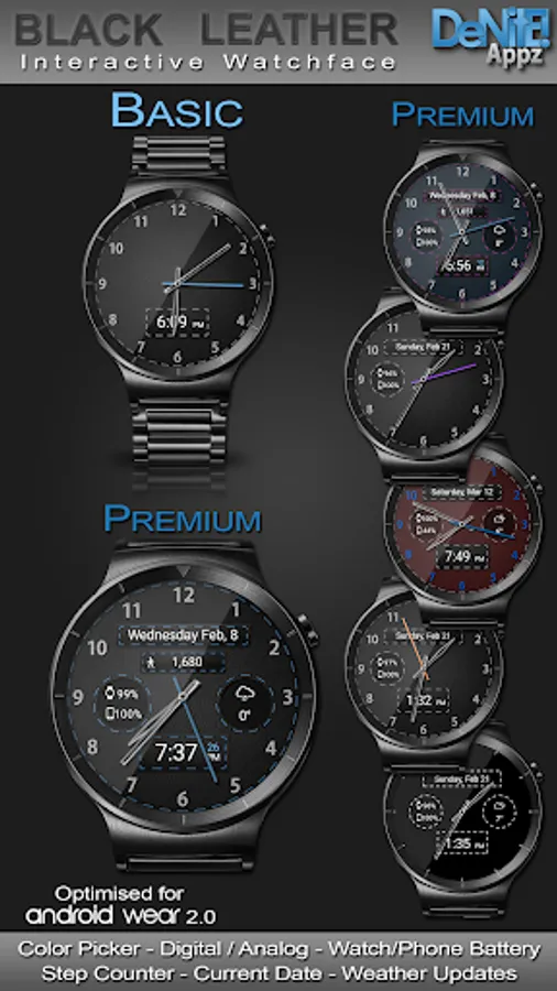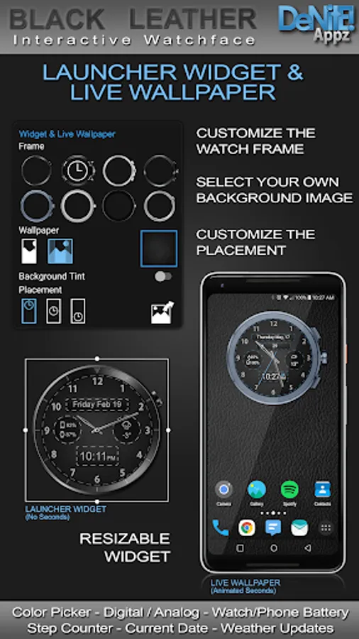 This completely customizable interactive HD Wear OS Watch Face, Clock Widget & Live Wallpaper brings a classic elegance to your wrist and Launcher. Features include custom complications, battery levels, weather conditions, step counter, color picker & date information. A settings app will also be installed on your mobile device to configure the watch face for any look you desire. Select any color and create a completely custom look for yourself! Don't have a Wear OS watch? No Problem! You can use the clock widget or Live Wallpaper on your launcher!