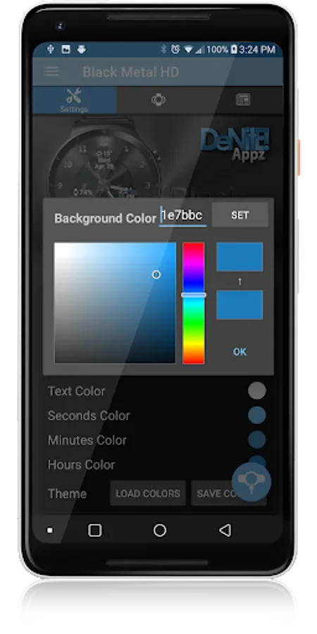 ✔ Color picker to select any color you like for the background, clock hands, text, & numbers