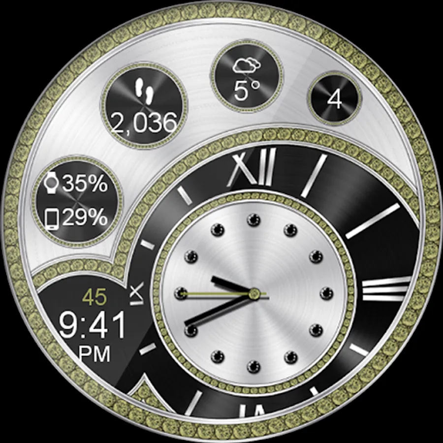 This completely customizable interactive HD Wear OS Watch Face, Clock Widget & Live Wallpaper brings a classic elegance to your wrist and Launcher. With realistic reflections that respond to the way you move your wrist or mobile device in real time you will be sure to catch the eye of every onlooker! Features include custom complications, battery levels, weather conditions, step counter, color picker & date information. A settings app will also be installed on your mobile device to configure the watch face for any look you desire. Select any color and create a completely custom look for yourself! Don't have a Wear OS watch? No Problem! You can use the clock widget or Live Wallpaper on your launcher!