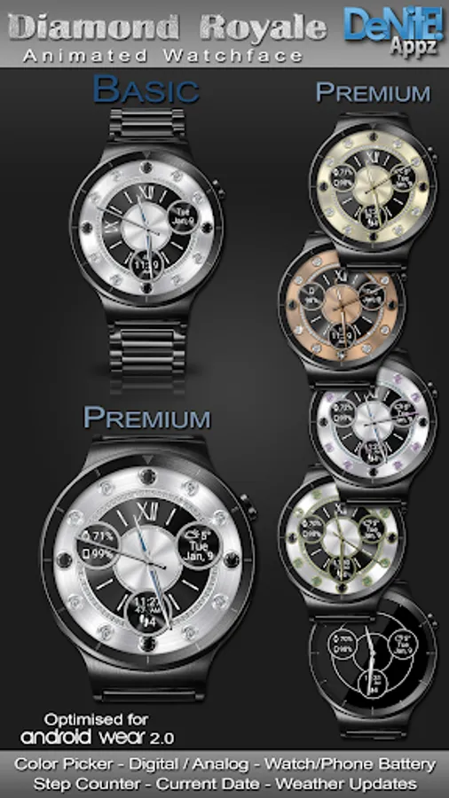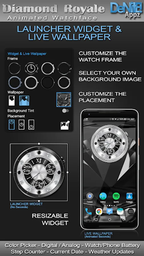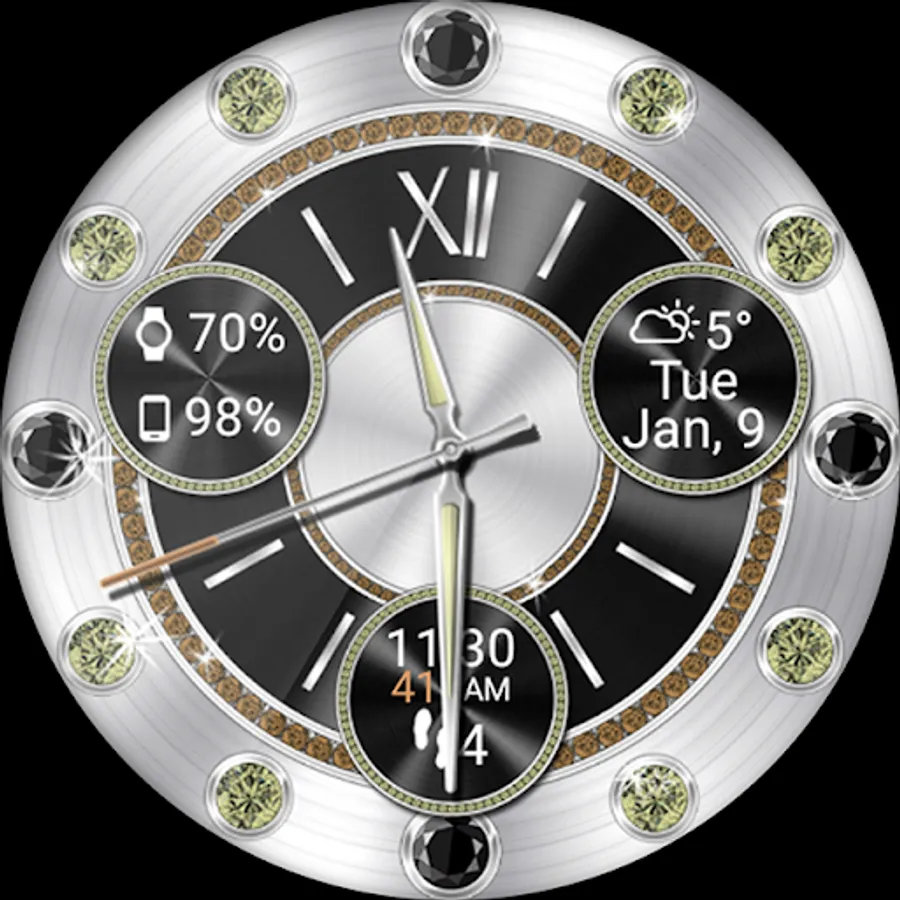 This completely customizable interactive HD Wear OS Watch Face, Clock Widget & Live Wallpaper brings a classic elegance to your wrist and Launcher. With realistic reflections that respond to the way you move your wrist or mobile device in real time you will be sure to catch the eye of every onlooker! Features include custom complications, battery levels, weather conditions, step counter, color picker & date information. A settings app will also be installed on your mobile device to configure the watch face for any look you desire. Select any color and create a completely custom look for yourself! Don't have a Wear OS watch? No Problem! You can use the clock widget or Live Wallpaper on your launcher!