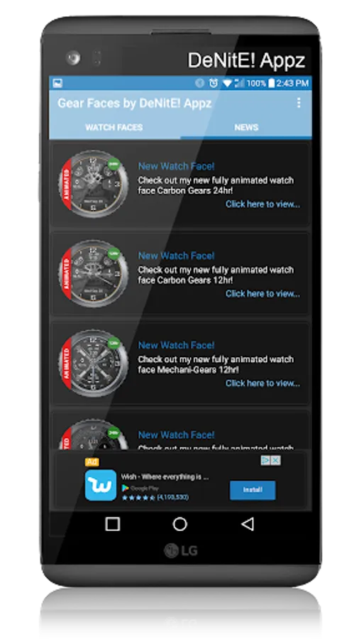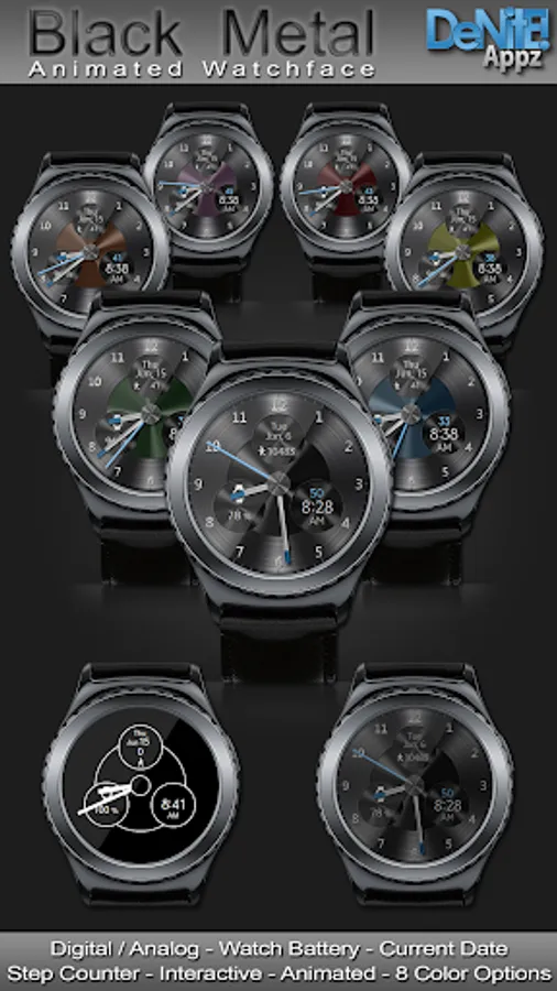 Here is an easy way to find great DeNitE! Appz Watch Faces for Samsung Gear S2, Gear S3 and Gear Sport (Tizen) watches and help keep you up to date with new DeNitE! Appz releases! Includes animated previews and notifications when new faces are released!