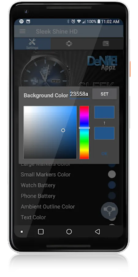✔ Color picker to select any color you like for the background, clock hands, text, & numbers
