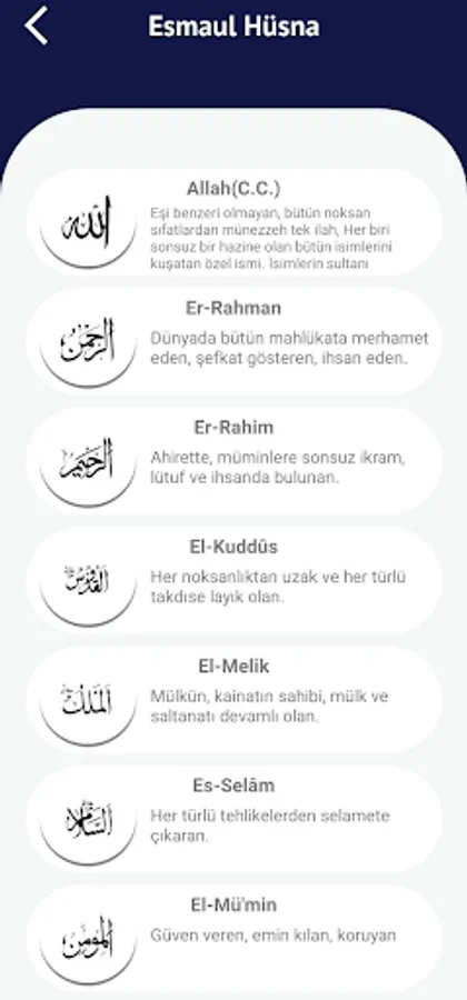 You can learn and repeat the 99 names of Allah (c.c) and their meanings thanks to our application.
