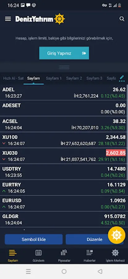 DenizYatırım's application, where buying and selling transactions can be made in stock and VIOP markets by accessing in-depth and instant market information!