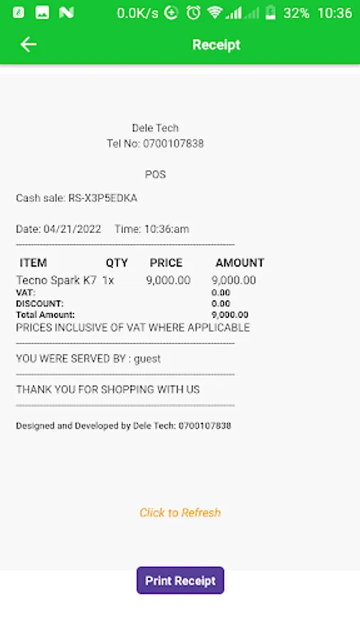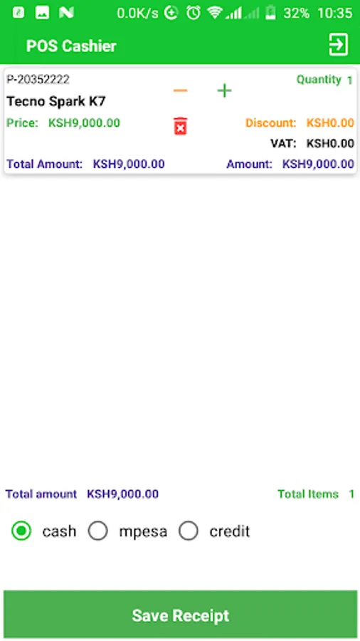 Point of Sale Cashier app is used by cashiers to make sales(cash sale, credit sale and mpesa sale). The app displays a product catalogue and generates Receipts for products sold. App support Bluetooth POS printer..