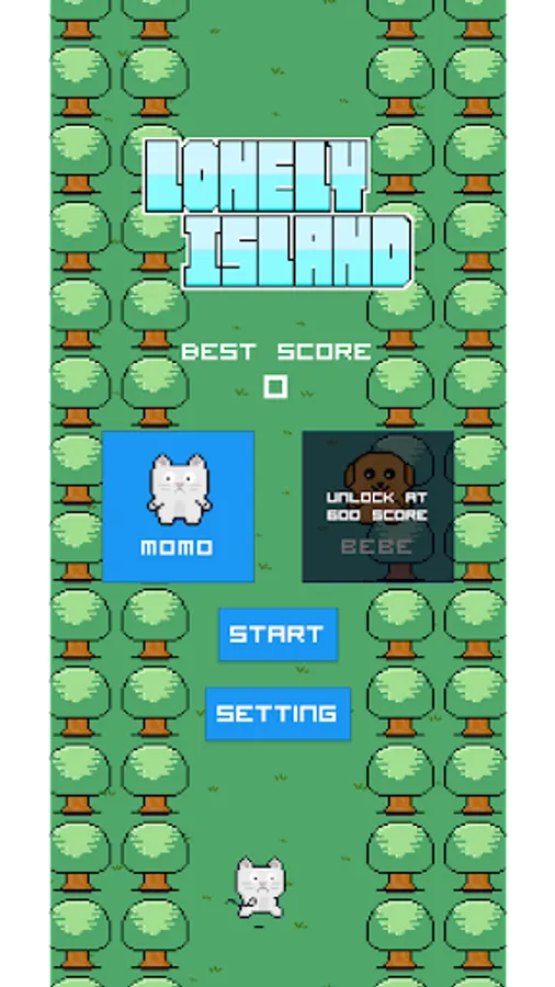 You have to constantly control the position of the character by tapping the screen, so the character can smoothly pass through the trees on the island. The farther you go, the higher score you get. If the character accidentally crashes into the trees, the game is over. Unlock new characters when you reach a certain score, so Momo won't be lonely.