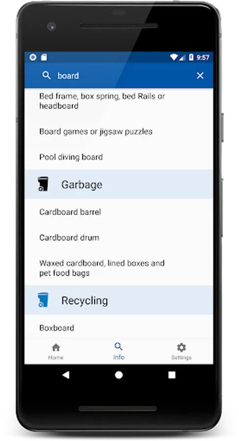 See your collection schedule and also search for how to dispose your waste properly (does it go in the Garbage, Recycling, Yard waste, or do you need to bring it to you local CRC)
