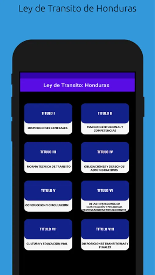 Digital version of the Honduran Traffic Law subdivided into titles, chapters and sections.