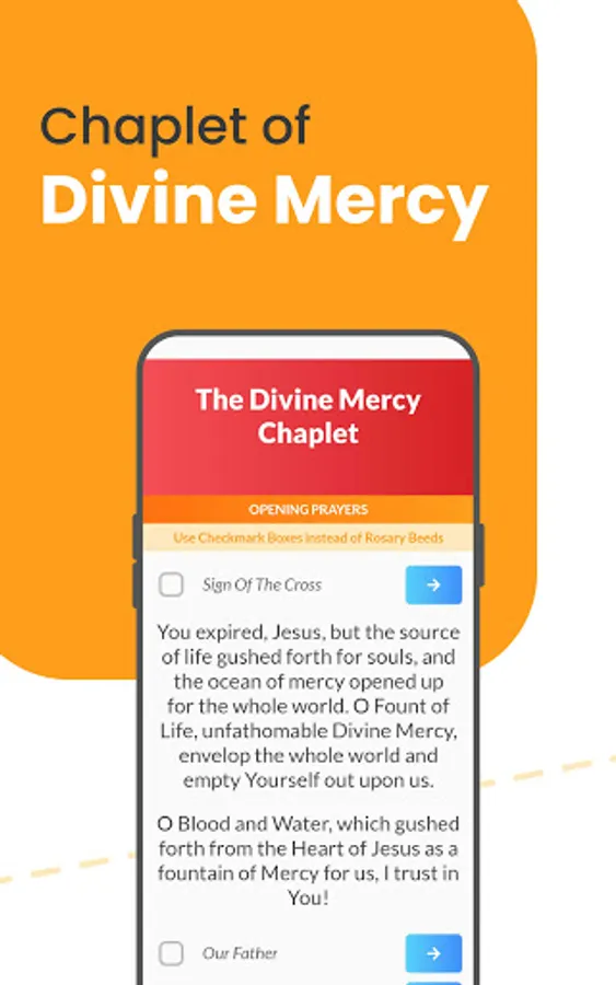 Holy Rosary and The Divine Mercy Chaplet are made in an interactive format so that you could use your Smartphone instead of having a physical rosary.
