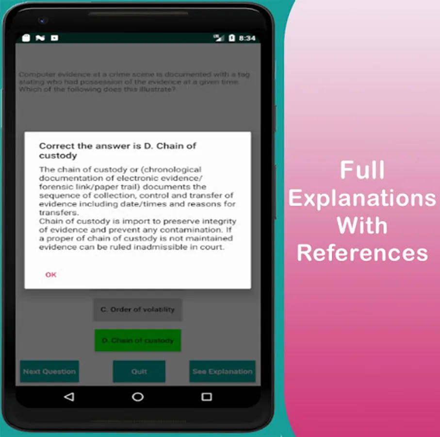 Each Question has an explanation with sources/References quoted so you know why the answer is the answer and understand more on the subject.