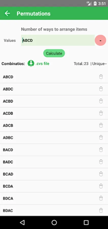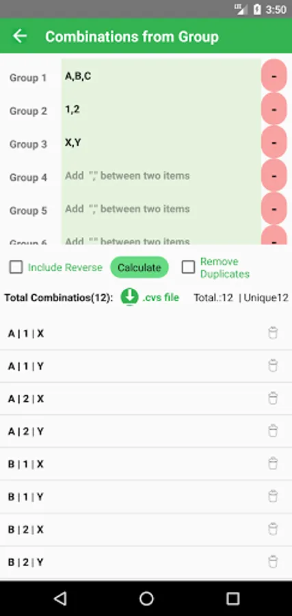 Get Combinations is the simple app which will give you all possible combinations from your data.