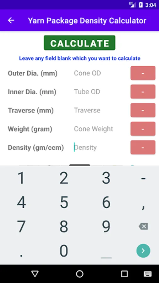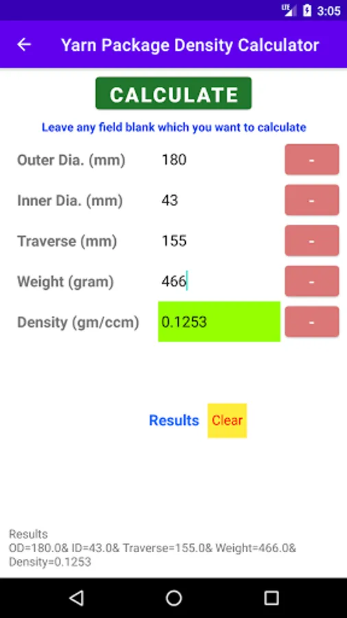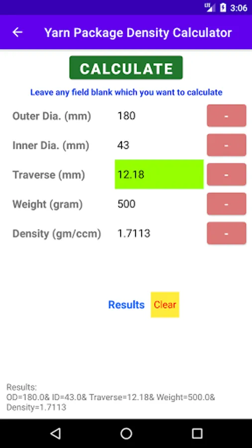 Calculate the density of Yarn Package or Hollow Cylinder.