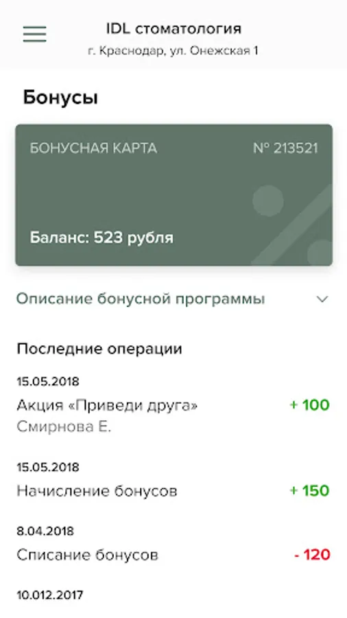 - Personal account with the history of all previous and future visits, as well as favorite services