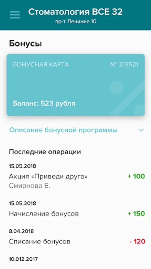 - Personal account with a history of all previous and future visits, as well as favorite services