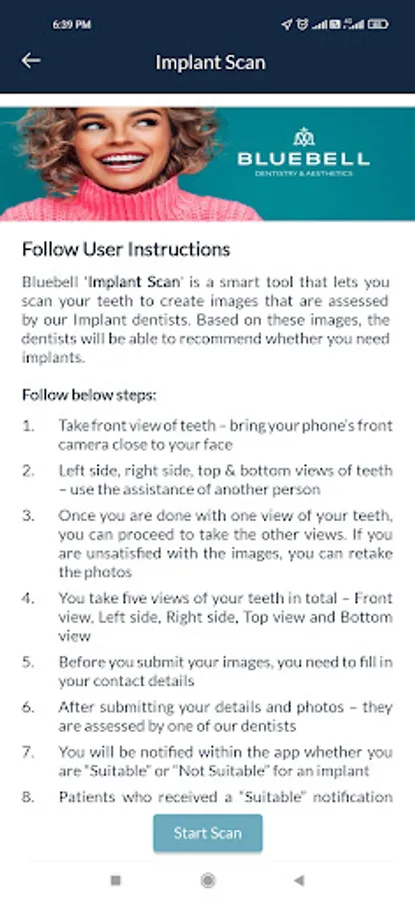The Bluebell App forms the basis for the transformative Bluebell dental monitoring system. The application is developed for dental scanning and supports patients on the basis of data, shared pictures. The application of Bluebell enables practitioners to accurately monitor tooth and oral care.