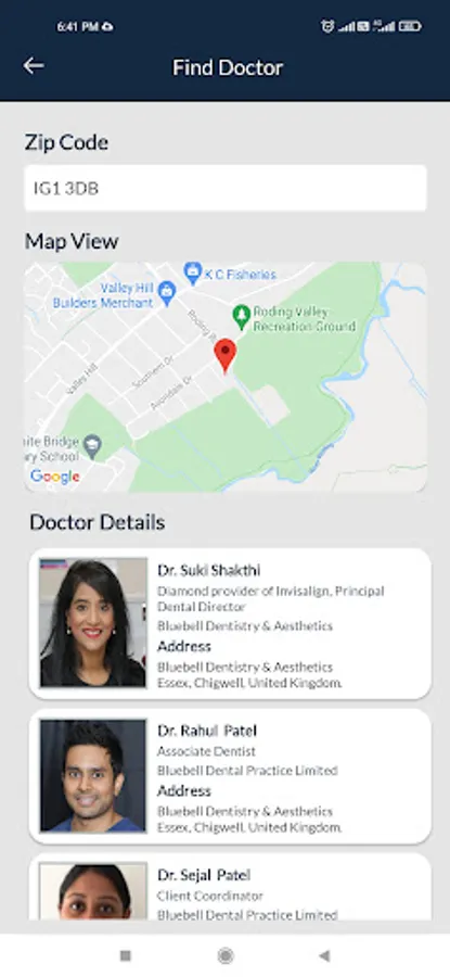 - Users can find their nearby dentists, just by entering their Zip code and location.