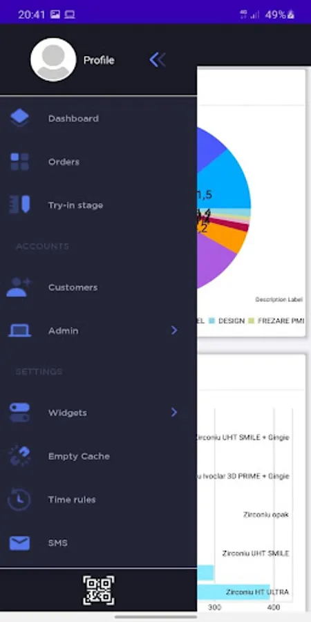 After scanning the QR code on the worksheet of a dental work, ordered through the software, we obtain the following information: