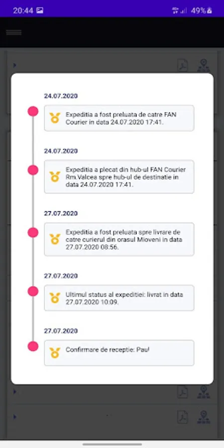 -Information about the delivery of the prosthetic order (awb number, courier, delivery date).