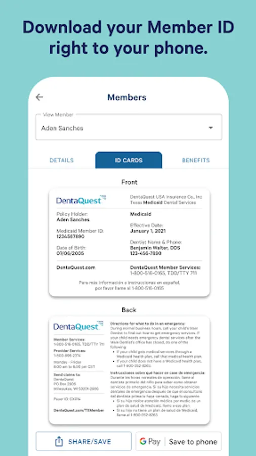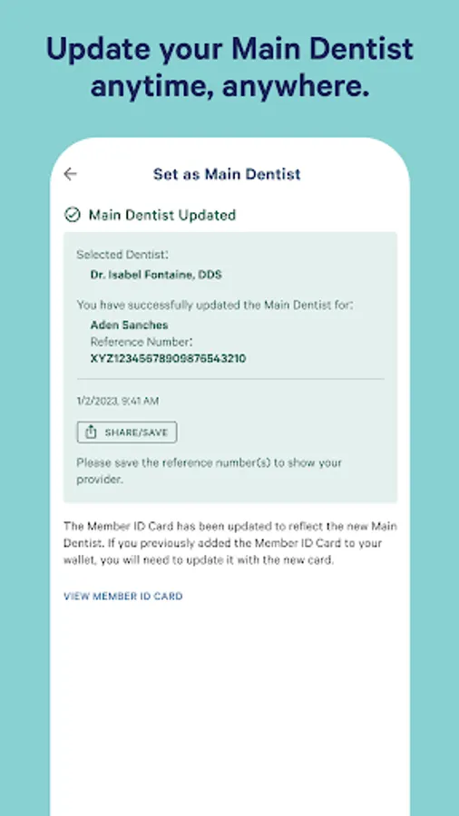 No need to request a printed version of your card. You can view and share an electronic ID card right from your phone, send it to your dentist's office via text or email and save it to your phone's digital wallet.
