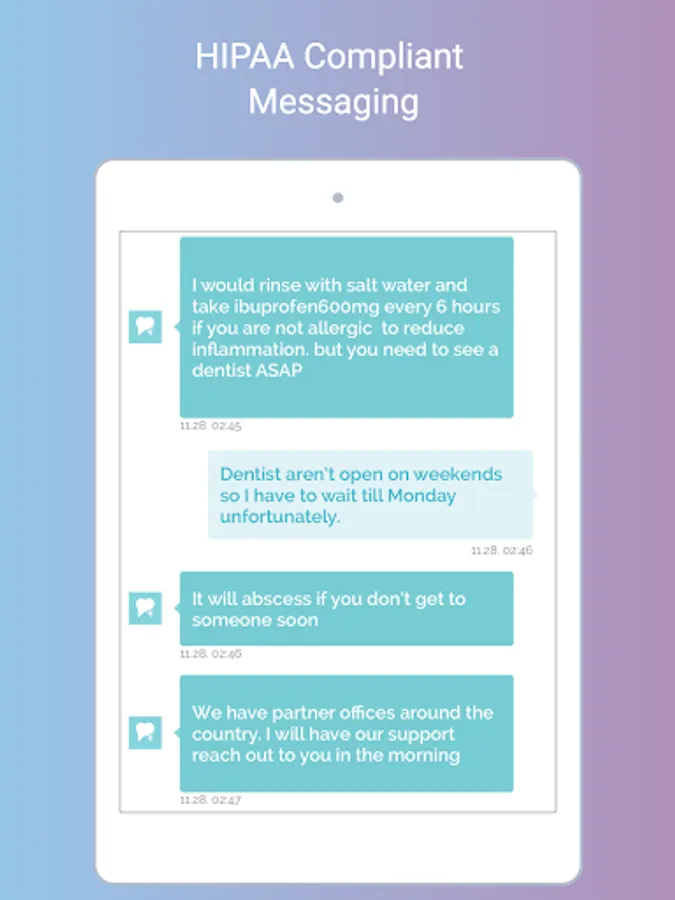 Dental providers can use this FREE mobile app to communicate through synchronous and asynchronous virtual visits with patients from any location anytime they like. Dental professionals can evaluate cases, prescribe medications, educate patients, generate practice revenue through ADA approved CDT insurance codes for Teledentistry, and increase treatment case conversions and customer loyalty.
