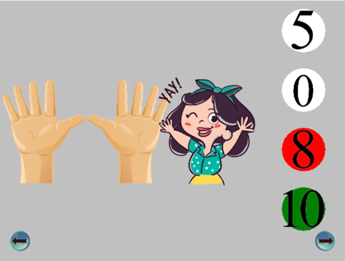 This app is meant for young children to get ready for math before they start school. Budding mathematicians need to understand numbers as the first step of the journey into math. Our hands and fingers serve as very good tools for counting and adding. This Finger Addition app is an excellent first step for young children to count and add with the help of their hands. The levels start as very easy, with just one hand counting, and progress slowly to two hands. Children should feel very comfortable in one level before moving onto the next levels. The simple app design is perfect for very young children, so they are not distracted as they enjoy learning and practicing their numbers. Recommended age: 2 - 5 year old children.