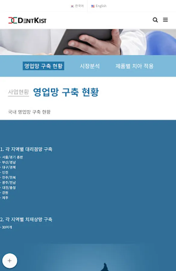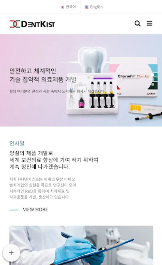 DentKist, Inc. DentKist, Inc. contributes to the improvement of global health care through the development of quality products We are developing and producing dental materials through continuous R&D with the aim of realizing the world's ultra-high-quality bio-company. the aging of the population Interest and demand for aesthetic dental materials are increasing due to the increase in periodontal disease economic income and improvement of living culture and our company intends to practice quality product development and contribute to the improvement of global health care through continuous R&D.