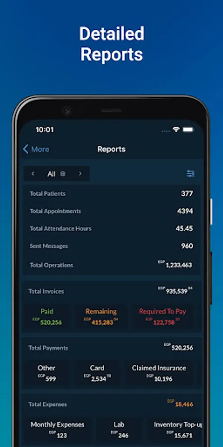 Happier patients lead to even more patients, more employees and more branches later on. Dentolize has had to specially develop very strong tools for dentists to be able to manage all business aspects in a hundred clinics all as smoothly as one clinic and without the need for more softwares, helping get the right insight with the perfect analytics, customized settings and templates. assign different permissions for employees, review their attendance and performance, and get notified with every important step. And to make it even easier and faster Dentolize created shortcut buttons and dynamic messages. even if you've lost internet connection, you can’t lose Dentolize. Shortly, you won’t find any difficulty running your practice anymore. Tools supported with a very powerful analytic tool that generates reports covering every aspect in management.